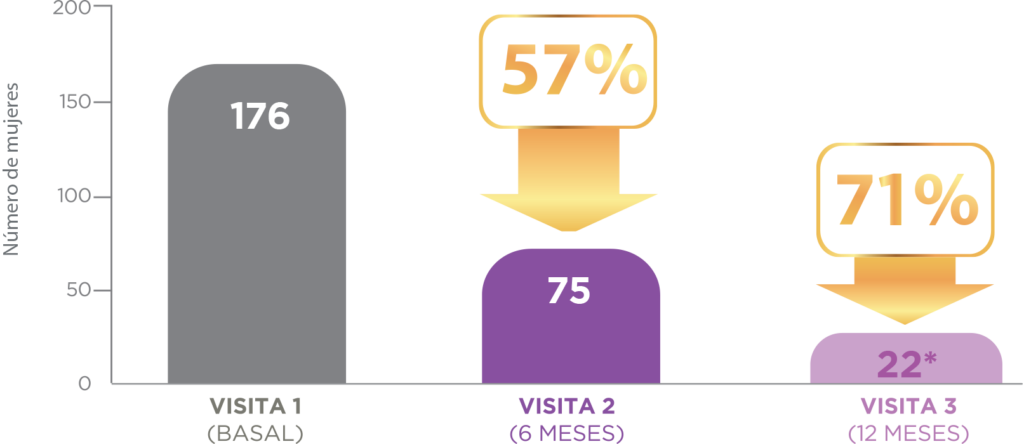 A los 12 meses de tratamiento, solamente 14 mujeres seguían presentando una citología anormal. Esto supone una normalización de las lesiones en el 76% de las mujeres desde el inicio del tratamiento.